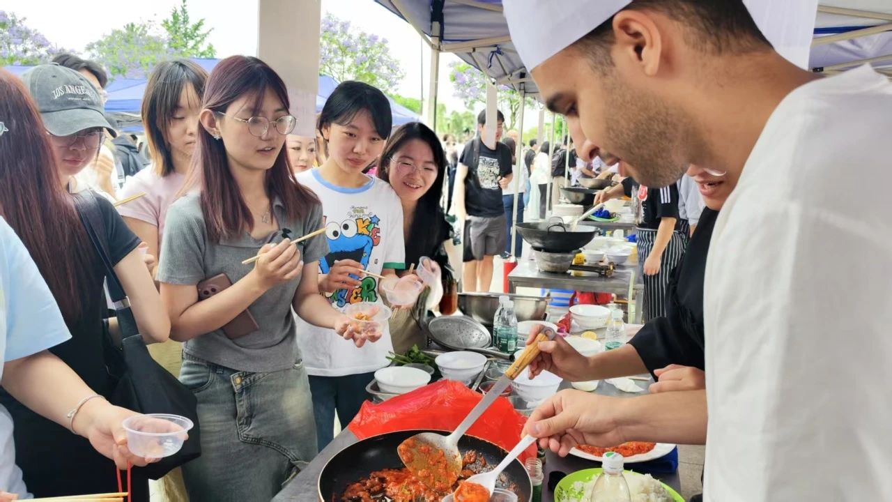 青春广场美食荟萃,香气撩人,围观的同学们纷纷拿起碗筷,共赴这场味蕾盛宴,脸上洋溢着幸福的笑容。