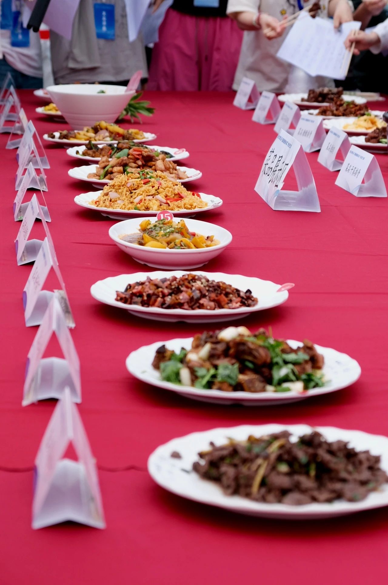 道道佳肴出锅装盘,阵阵香气引人垂涎。选手们带着满满的成就感,将精心制作的家乡风味端上点评台和展台。3位专业评委率先上阵,观其色泽、嗅其鲜香、尝其风味,给出独到的点评和专业的建议。20位大众评委随后入场,尝遍来自五湖四海的味道,评选他们心中“色香味俱全”的菜品。