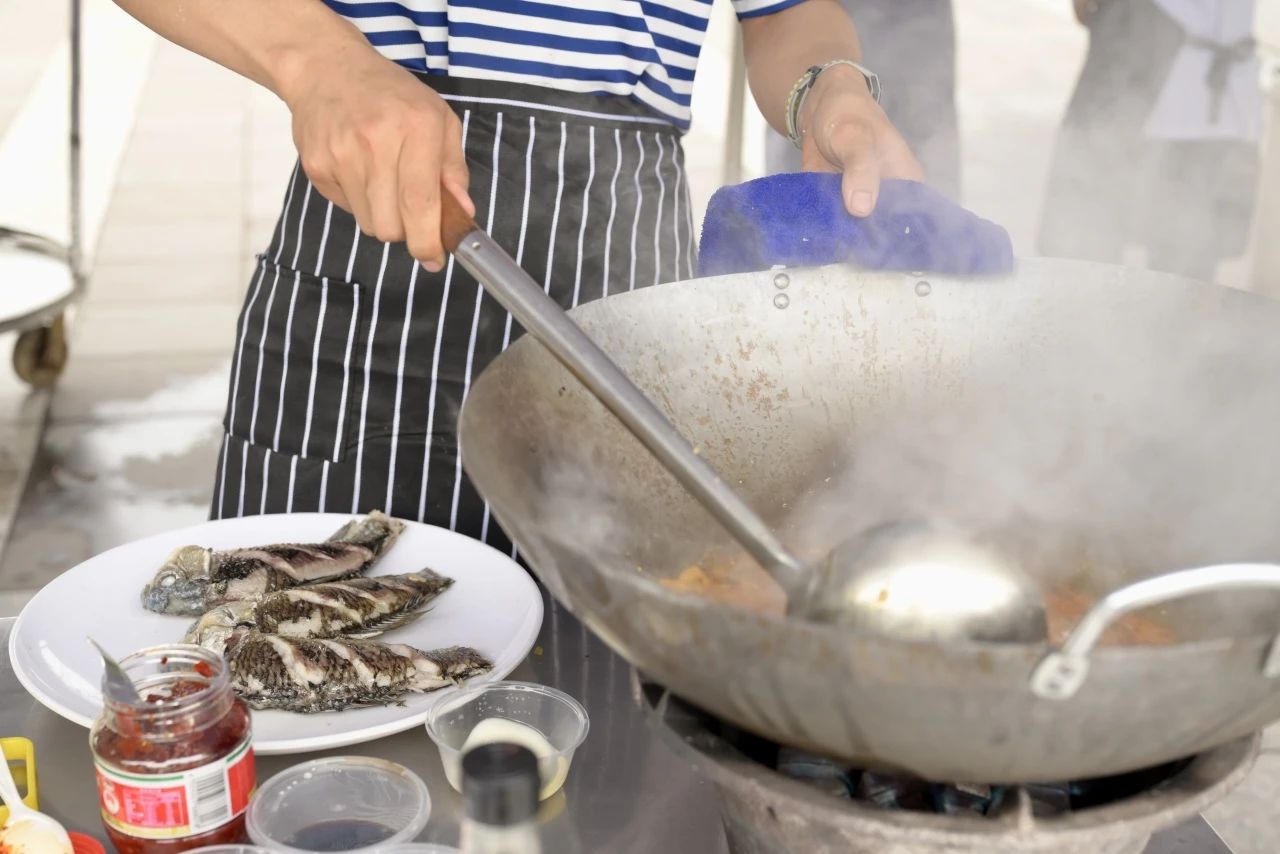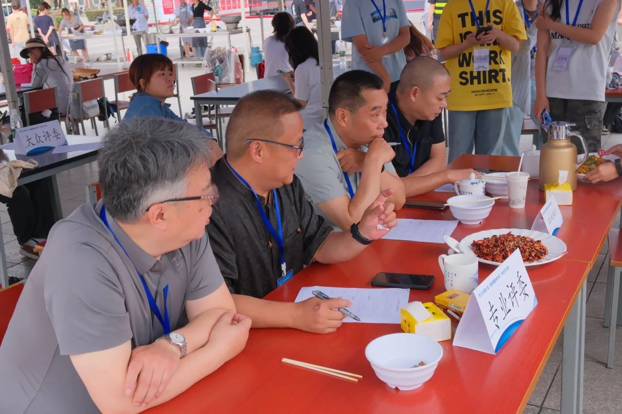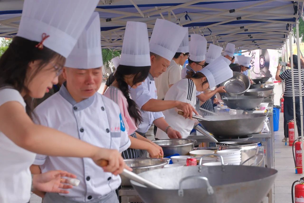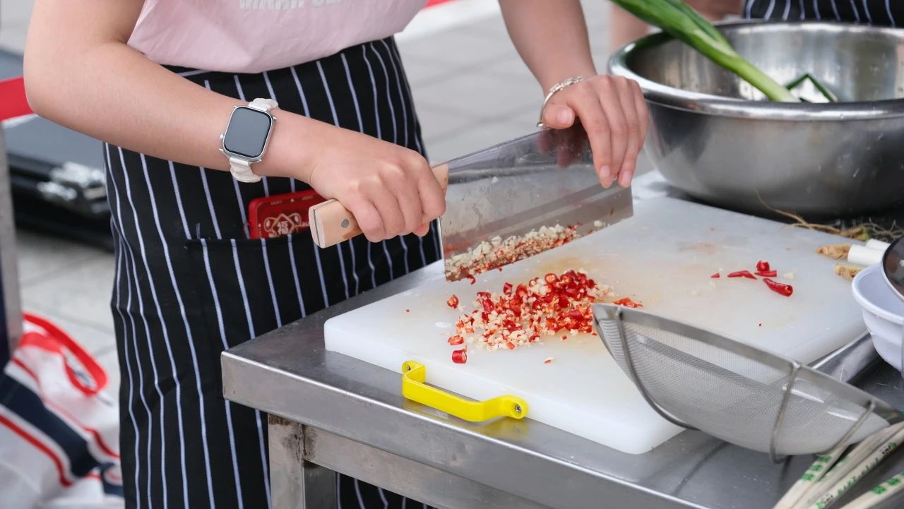 随着比赛的进程,现场氛围逐渐沸腾。锅碗瓢盆碰撞的声音、切菜炒菜的声音、同学们的欢笑声汇聚成一曲热闹的美食交响曲。选手们全神贯注地投入家乡菜制作中,食材在巧手下被精心处理,刀起刀落间尽显娴熟技艺。