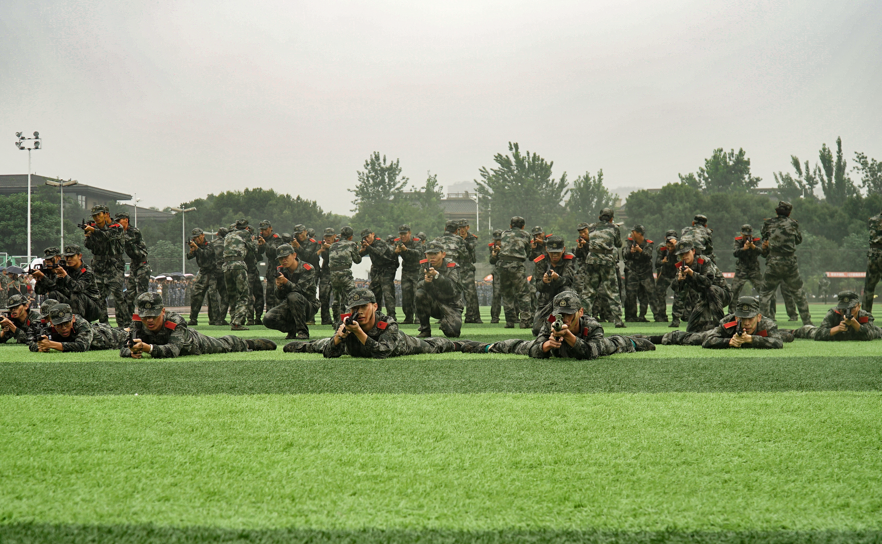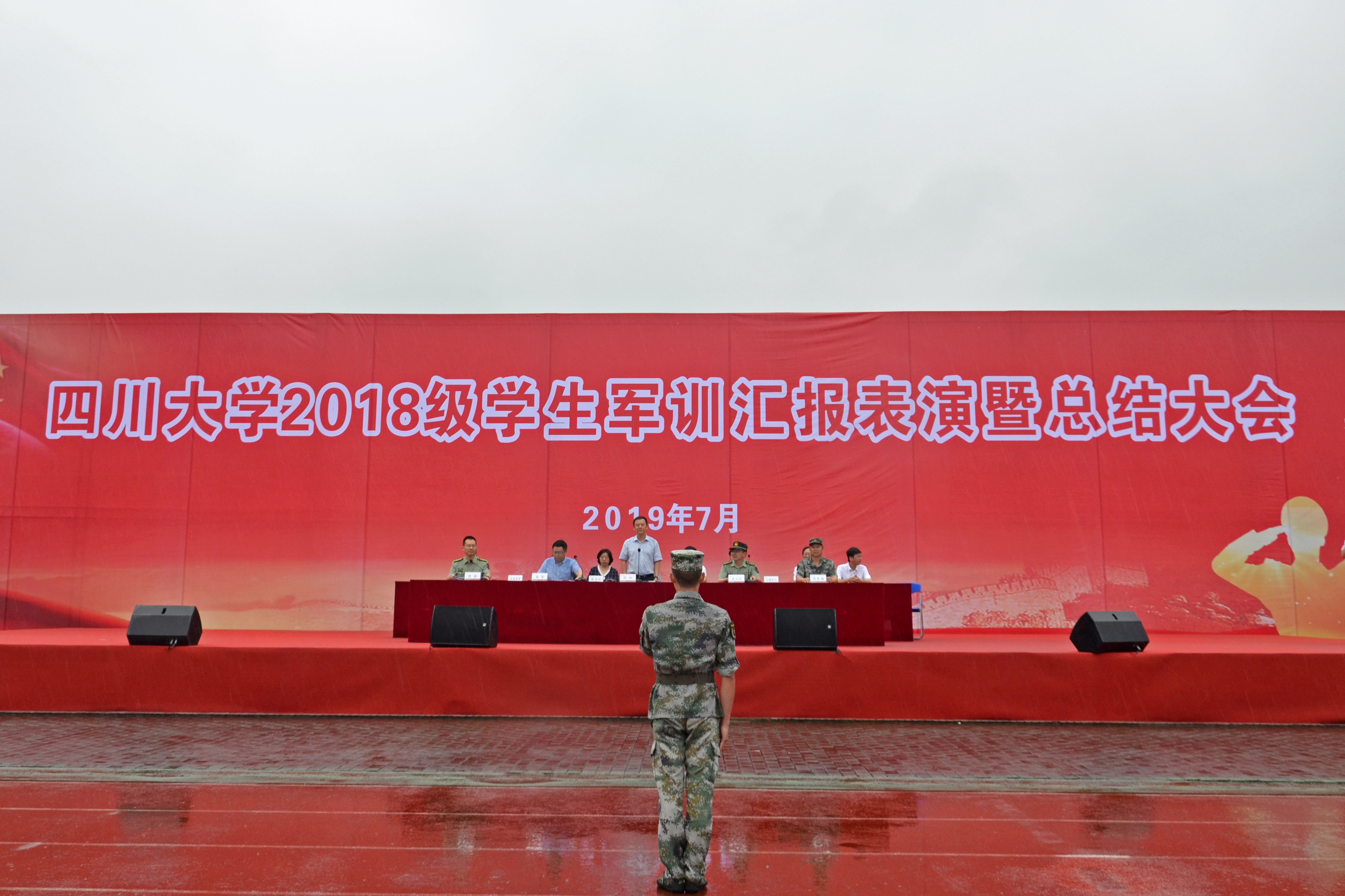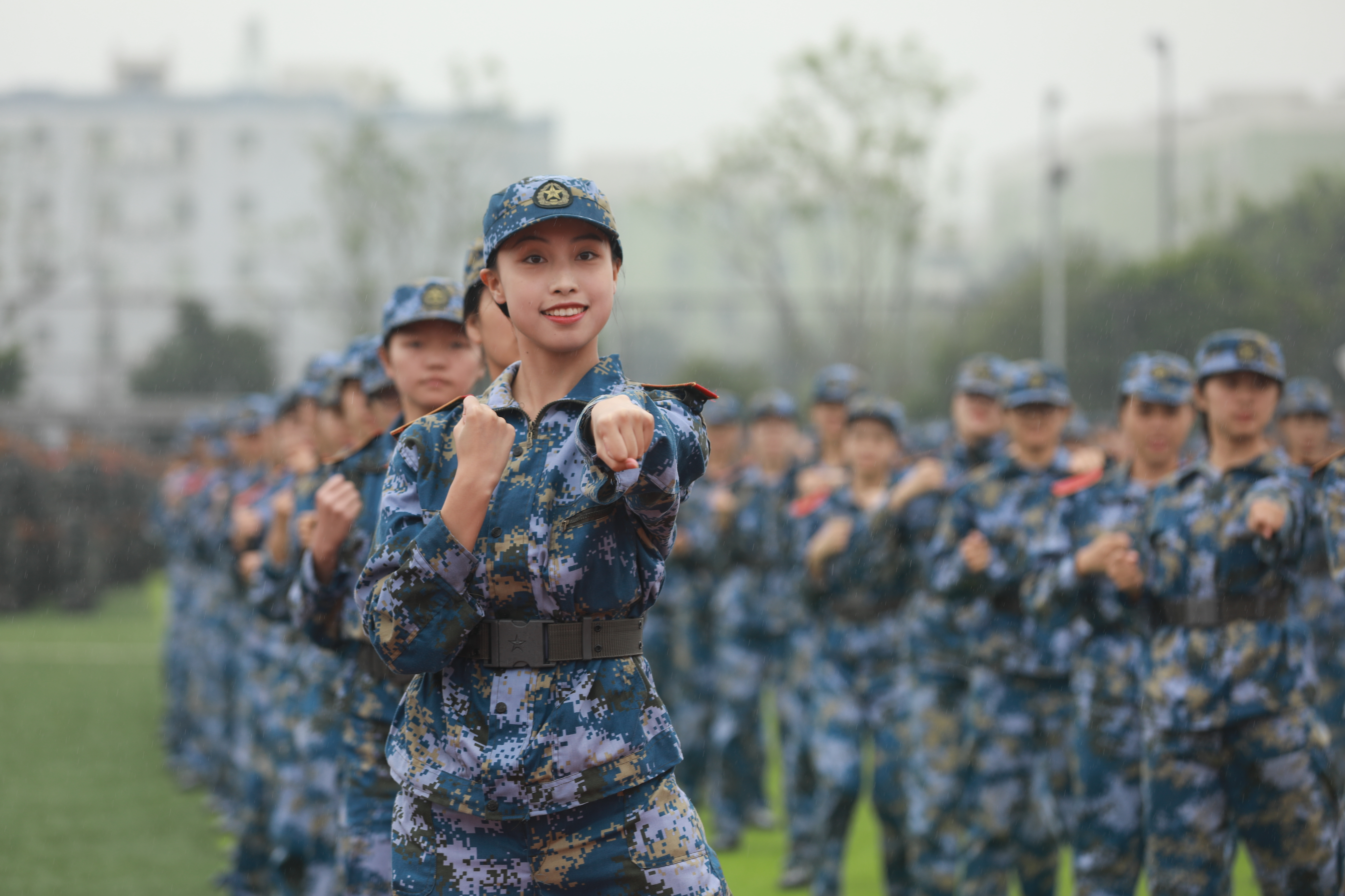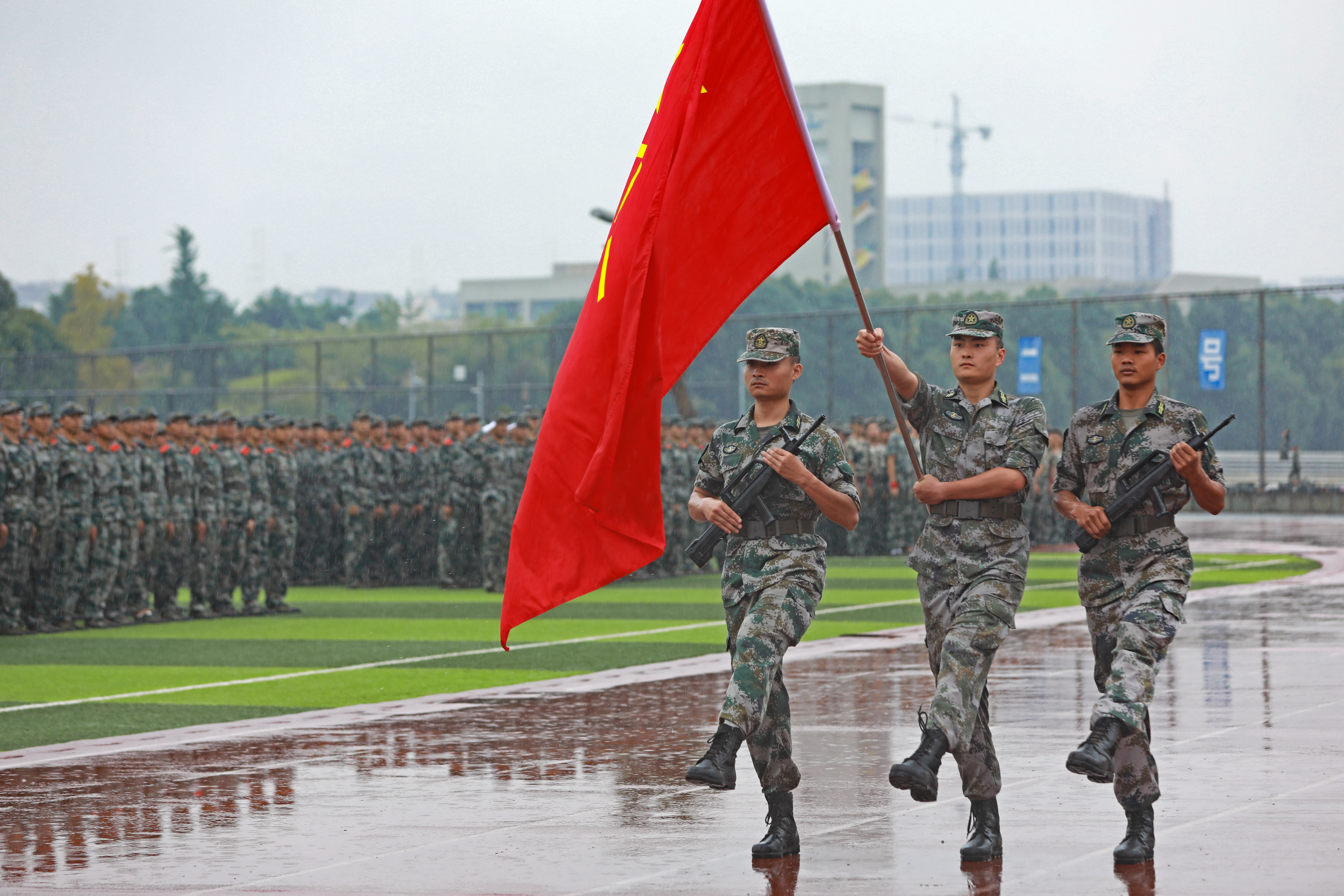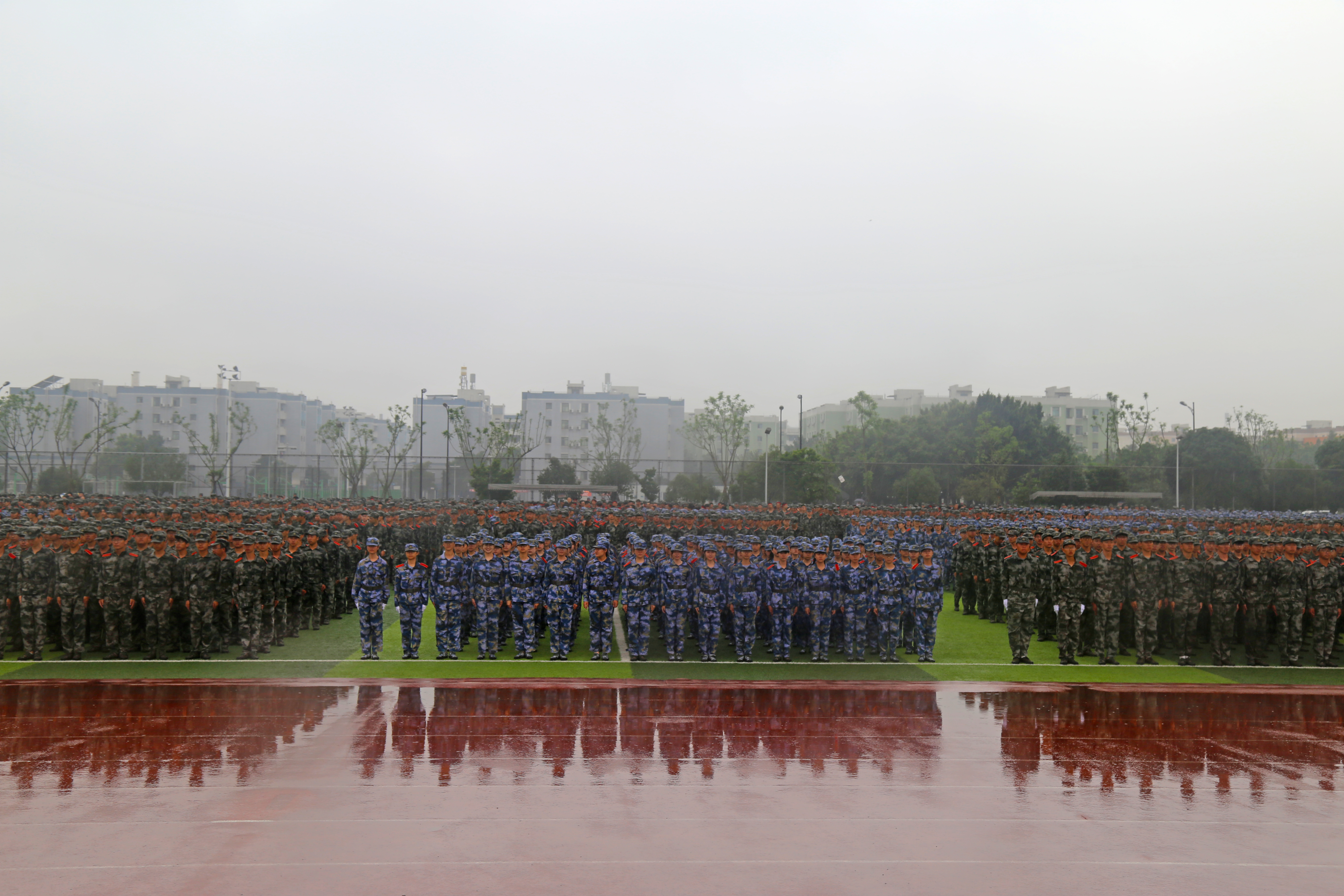 两周的军训时间看似短暂,但是同学们在这14天中所接受的国防教育、所收获的军人作风,同这场在雨中进行的汇报表演一起,成为此生难以磨灭的印记。相信在未来的日子里,领导的亲切慰问、教官的严格要求、老师的悉心教导、同学的携手共进,都将在彼此的回忆中熠熠生辉。