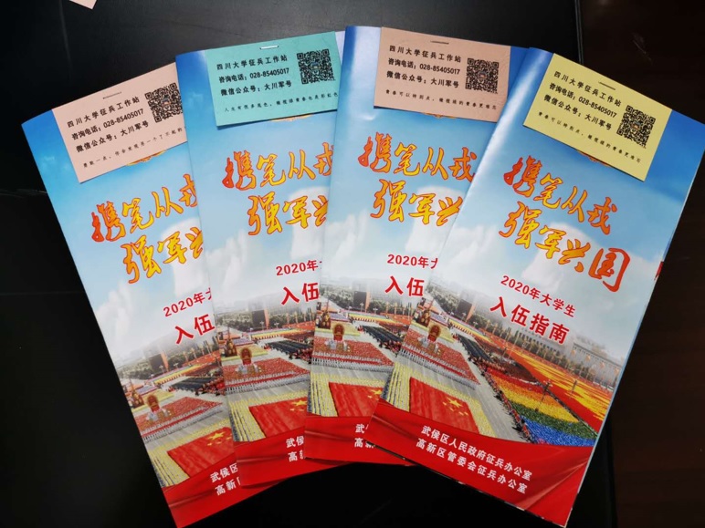 2020年5月26日下午,望江校区文华活动中心二楼报告厅学校召开的2020届毕业生派遣工作会上,学工部军事科李宜老师对我校应届毕业生征兵工作进行了针对性的宣传,会场设置专门发放征兵宣传资料的站点,并对前来参加会议的各学院就业专职岗、毕业班辅导员进行了宣传,针对各学院今年的就业状况,发放了相关的征兵宣传资料,解答关于征兵优惠政策、应征条件等问题,发放了近300份征兵宣传资料。