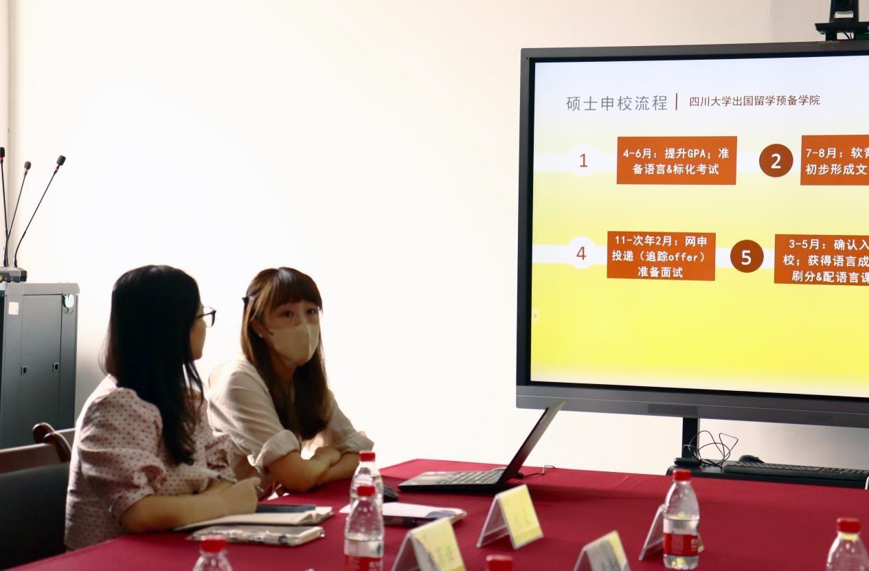 随后,国际处田小倩老师、出国留学培训部黄梓棉老师以及具有丰富留学指导经验的范禹老师分享了出国(境)留学经验;田小倩老师对校际联合培养、“大川视界”、CSC国家公派等三个重点项目进行介绍,全方位展示了我校现有的出国(境)项目与短期访学资源;黄梓棉老师基于本科生深造现状和趋势分析对出国(境)留学的资源和优势进行系统性分析,向各位导师分享指导学生进行科学规划的要点,帮助导师团队更好地开展咨询工作;范禹老师对各地区留学优劣展开介绍,提升导师团队对学生留学咨询的整体性把握。会后,各位老师前往“致远”留学工作坊进行参观。