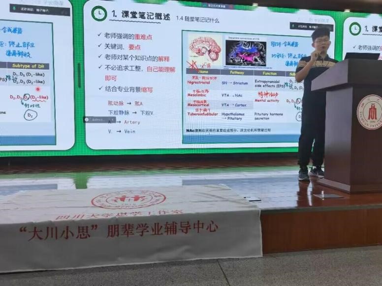 10月29日晚,“大川小思”第46期学长微课——“如何做好课程笔记”在江安校区i创街二段学生学业与发展支持中心致远报告厅顺利举行。“大川小思”学习效能组导师白津城同学担任本次微课主讲人,为2023级新同学们分享了如何记录和用好课程笔记。