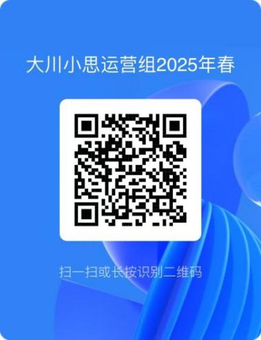 1.如有意向报名或对招新内容存在疑问,扫码加入QQ群“大川小思2025春季学期招新对外答疑群”;
