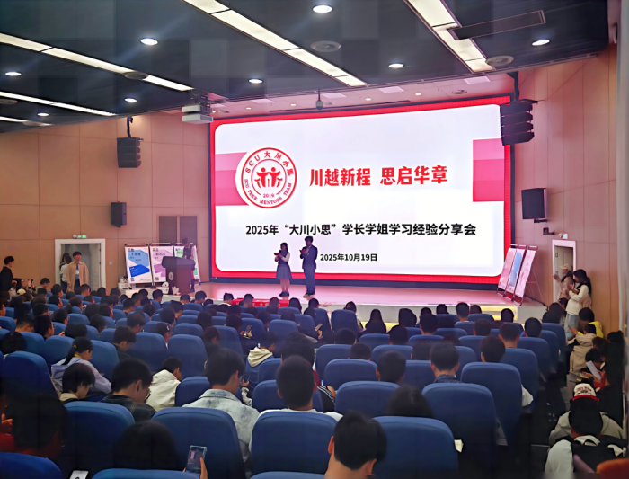 为帮助新生尽快适应大学学习生活,顺利开启大学成长之路,10月19日晚,由党委学生工作部(处)主办、“大川小思”朋辈辅导中心承办的新生导学活动“川越新程,思启华章——‘大川小思’2025年学长学姐学习经验分享会”在江安校区一教A水上报告厅圆满举行。