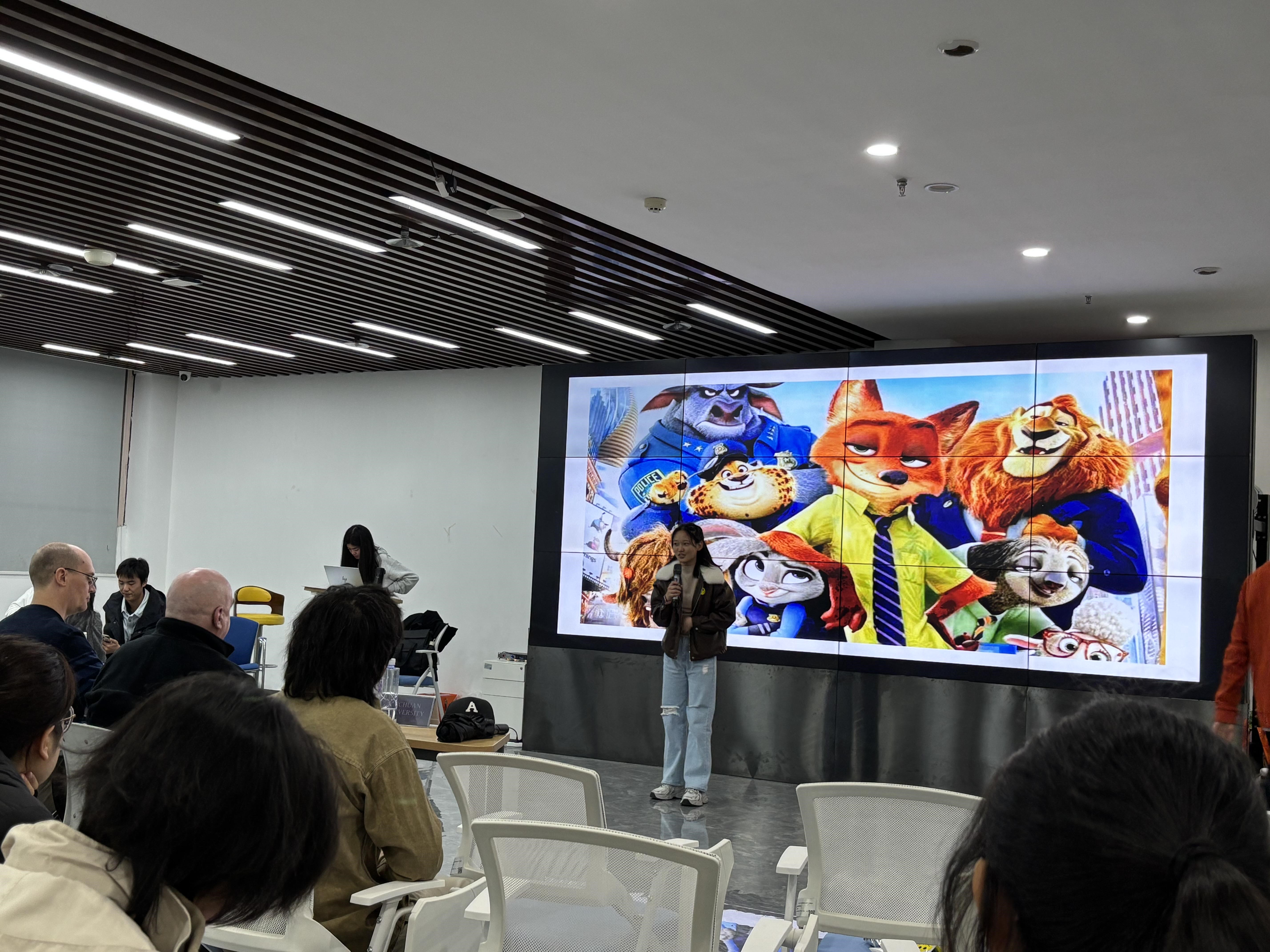 在点评环节,匹兹堡学院的David Jeffrey教授和Mathew Evans教授就同学们在表达中存在的语法错误、语言表达流畅度、演讲能力以及情节呈现的完整性等方面,对各个小组进行了点评,并给出了相应的提升建议。他们还鼓励同学们不要害怕犯错,要敢于演讲,在表达中成长,在合作中学习。