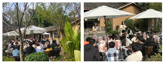 竹艺村是国家级非物质文化遗产道明竹编所在地,也是中国民间艺术(竹编)之乡。依托竹编这一非物质文化遗产,竹艺村融合当地特色农业、竹编产业、休闲体验、文化创意打造美丽新村建设,促进旅游和竹编产业发展,推动竹文化及林盘文化的推广与传承。“大川小思”朋辈导师团队在初冬暖阳的沐浴下,兴致勃勃地汇聚在竹韵满满的竹艺新村,体悟优秀民间艺术,感受非遗文化在新时代的发展振兴。