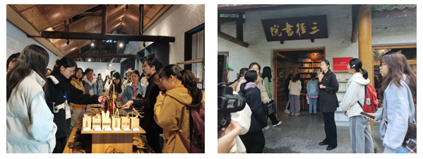 上午,在讲解员的带领下,同学们分组参观了竹艺村孵化中心、三径书院、竹艺博物馆、非遗集市等。同学们边走、边听、边看,从三径书院到竹艺博物馆,从富有年代感的竹编烘笼、竹编农具,到设计雅致的茶具、造型优美的提包、憨态可掬的“大熊猫”,竹艺村的发展振兴长卷在我们面前铺展开来。亲眼看见竹艺品的不断变迁,亲身感受村民们的幸福笑脸,同学们无不为其匠人精神、民风淳朴所打动,真切感受到了“美丽中国”的风景美、人情美、文化美;切实体悟到了国家乡村振兴战略在竹艺村结出的生态、文明、文化、人才、产业振兴硕果。
