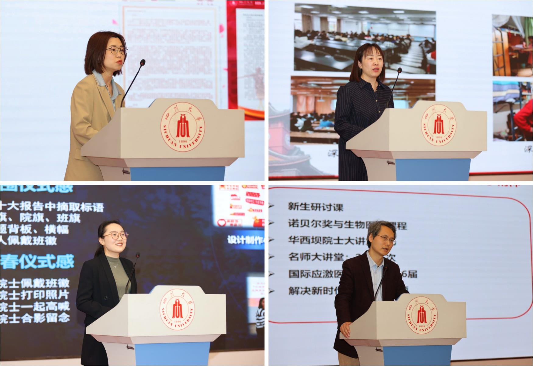 在论坛的交流培训阶段,文学与新闻学院辅导员杨珊,数学学院辅导员贾裕玟,空天科学与工程学院辅导员马丽娜,基础医学与法医学院辅导员郑风劲分别围绕“红色文化育人”“服务学生成长成才”“思政育人队伍建设”“学生精细化管理”等主题进行了工作交流。