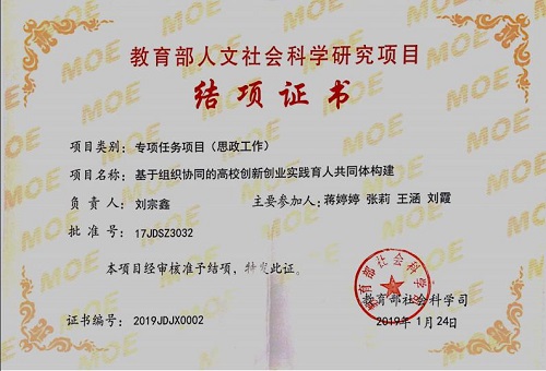 (教育部人文社会科学项目结项证书)