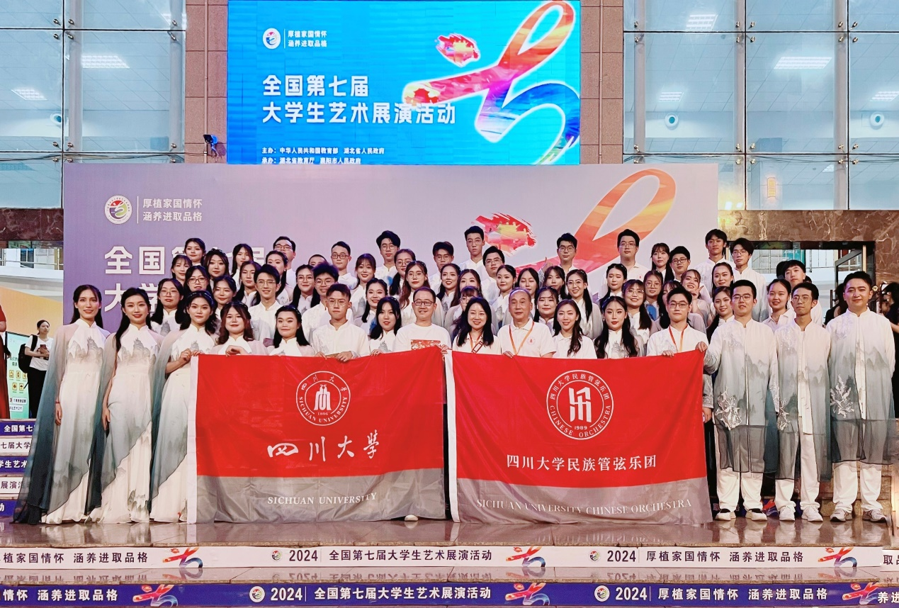 展演前,校党委副书记刘晓虎来到学生排练场地作行前动员,并为同学们加油鼓劲。展演期间,我校学生民乐团、学生合唱团共计105名来自文理工医29个学院的本硕博学生在大艺展的舞台上充分展现了川大学子的风采。