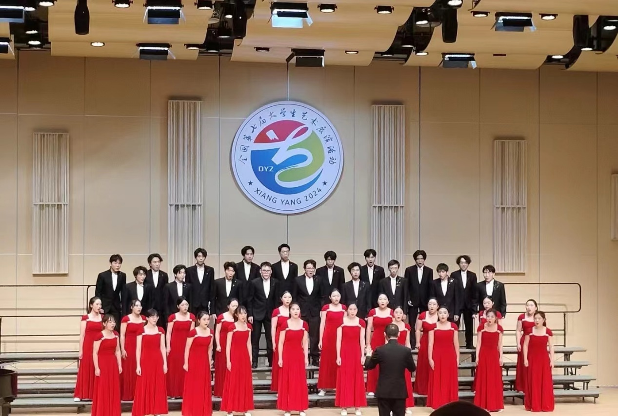 我校学生合唱团演唱的《属于我们的时刻,正在来临》《排山倒海·乘胜追击》荣获本届大艺展声乐甲组一等奖和优秀创作奖。第一首曲目《属于我们的时刻,正在来临》为原创作品,由具象到抽象,由叙写到抒情,体现出小我融入大我,青春献给祖国的志向;参赛第二首曲目《排山倒海·乘胜追击》改编自舞剧《红色娘子军》,歌曲激昂磅礴,描绘了红军主力以势不可当的气势,英勇奋进,果断追击敌军的壮观场景。