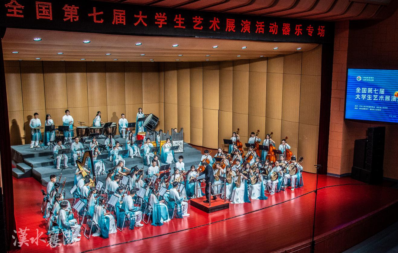 2024年6月12日至18日,由教育部和湖北省人民政府主办的第七届全国大学生艺术展演活动(以下简称“大艺展”)在湖北襄阳举办。本届大艺展以“厚植家国情怀 涵养进取品格”为主题,全国现场展演共有31个省(区、市)、新疆生产建设兵团和香港特别行政区、澳门特别行政区282个项目7400余名师生参加,举办了声乐、器乐、舞蹈、戏剧、朗诵五大艺术表演类的14场展演活动;组织了57个大学生艺术实践工作坊参展,现场展示了286件艺术作品。