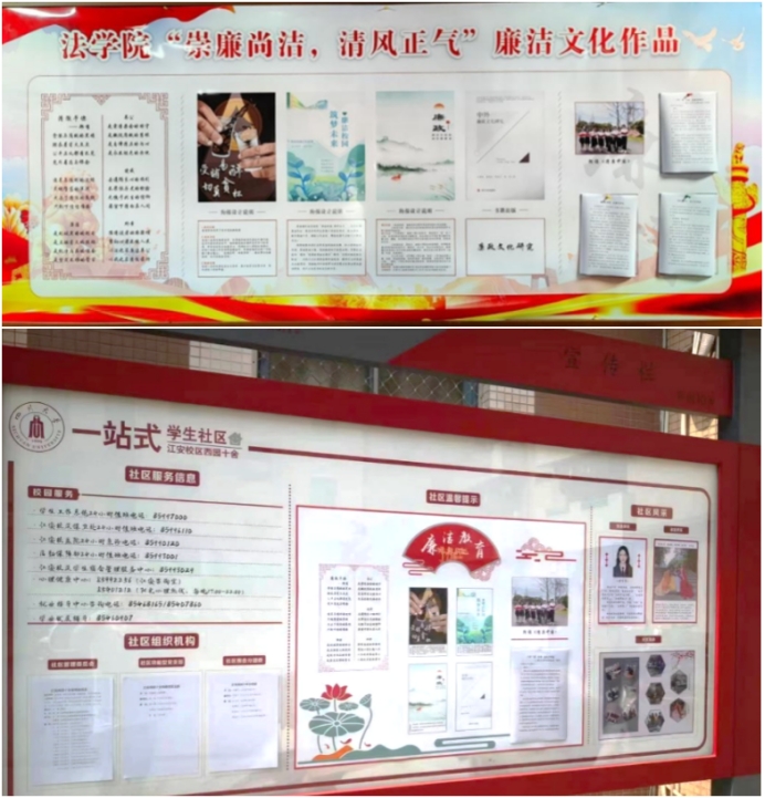 引导高校大学生树立起强烈的社会责任意识和廉洁意识是高校廉政文化建设的主要内容,为了进一步在学生群体中形成良好的党风廉政学习氛围,做深做实校园廉洁文化,在“一站式”学生社区中广泛开展“崇廉尚洁,清风正气”廉洁教育系列活动。一方面加强政治理论学习,筑牢廉洁思想防线。在教师主讲的基础上,充分调动同学们的积极性和创造力,开展故事分享、诗朗诵、小品剧等多种形式的学习活动,引导学生牢固树立廉洁自律意识,形成廉洁校园新风。另一方面,在社区学生群体中广泛征集廉洁文化作品并展出,将廉洁元素以各种形式融入诗歌、海报、视频、朗诵中,积极探索“浸润式”思想教育新模式。