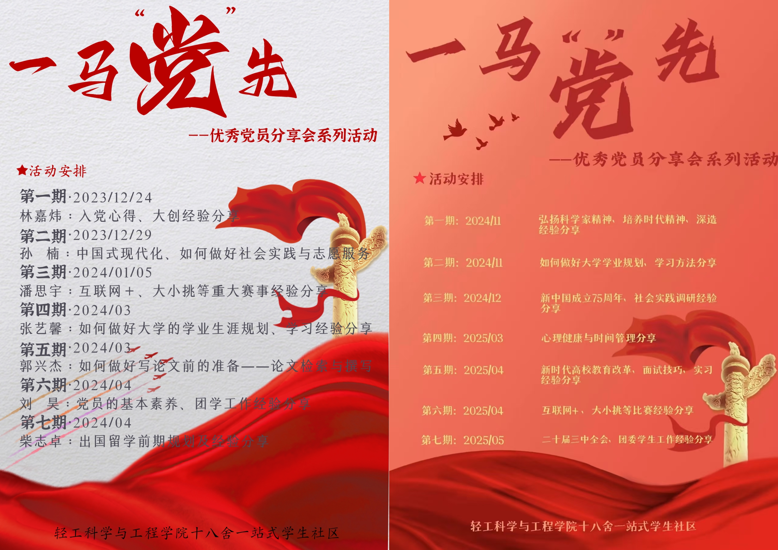 针对低年级学生普遍存在的入党流程认知模糊、发展定位迷茫等问题,学院依托学生社区持续推出“一马‘党’先”优秀党员分享系列活动。