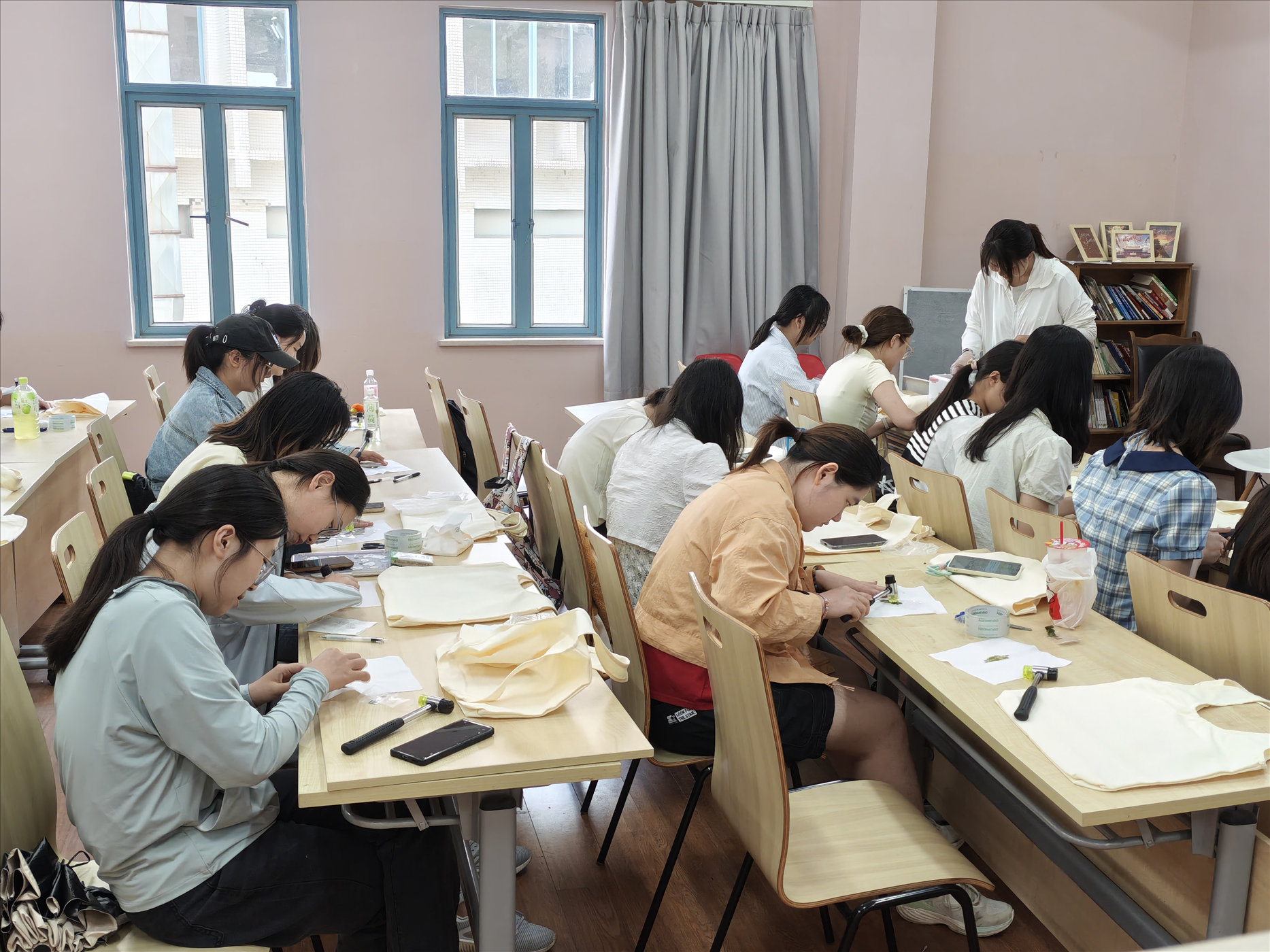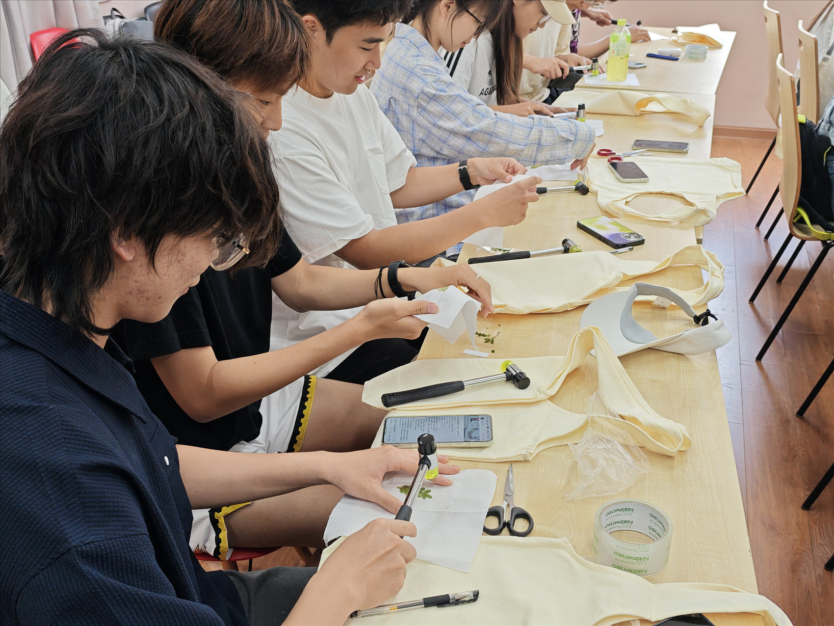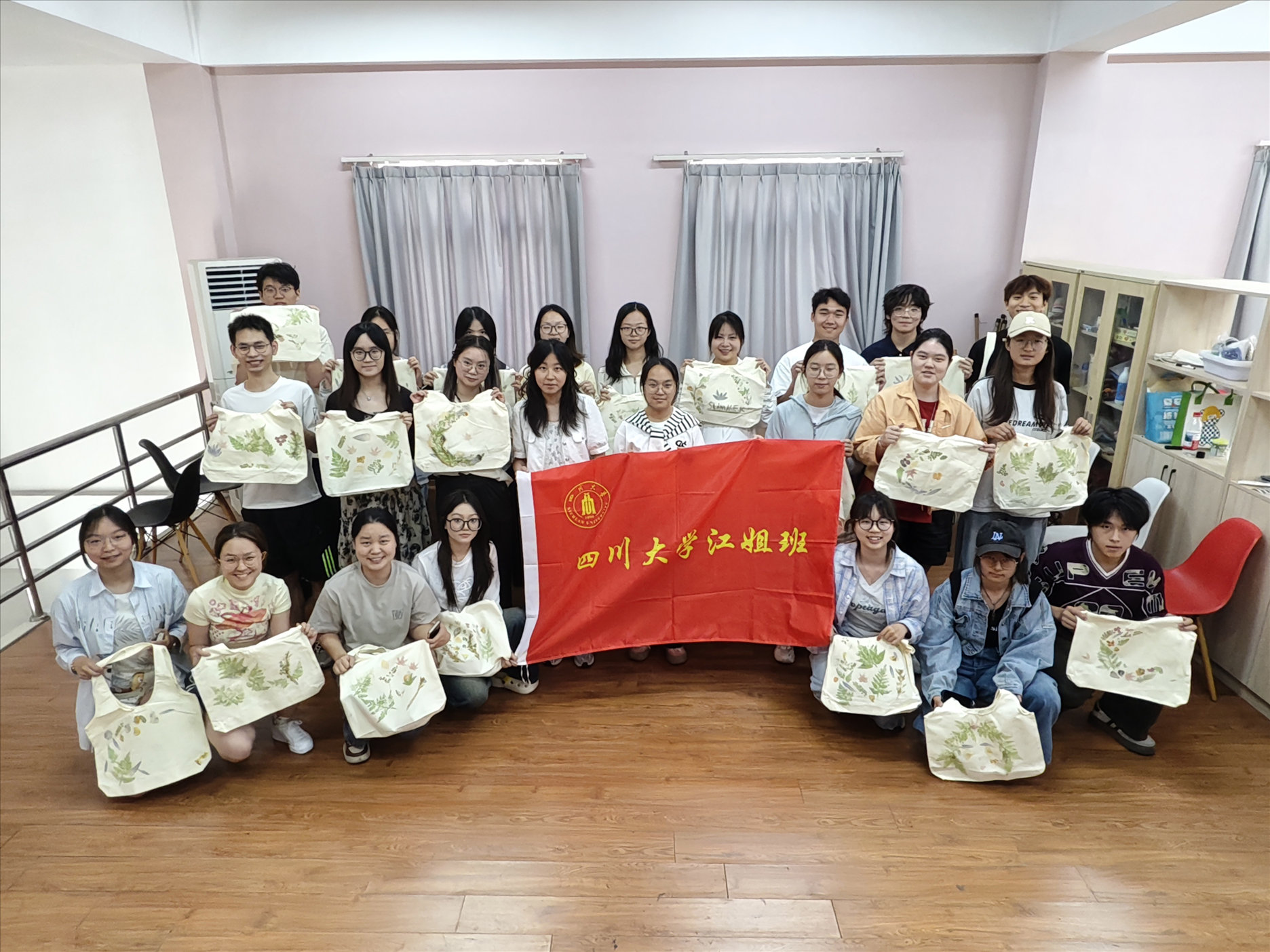 华西公共卫生学院江姐班联合结对学生在江安西园11舍学生社区举办植物手工拓印活动,同学们通过植物叶片汁液、脉络在布料创作出独一无二的“自然艺术品”,将自然之美与非遗技艺相融合,体悟传统技艺的人文价值,让传统文化在学生社区“活起来”。