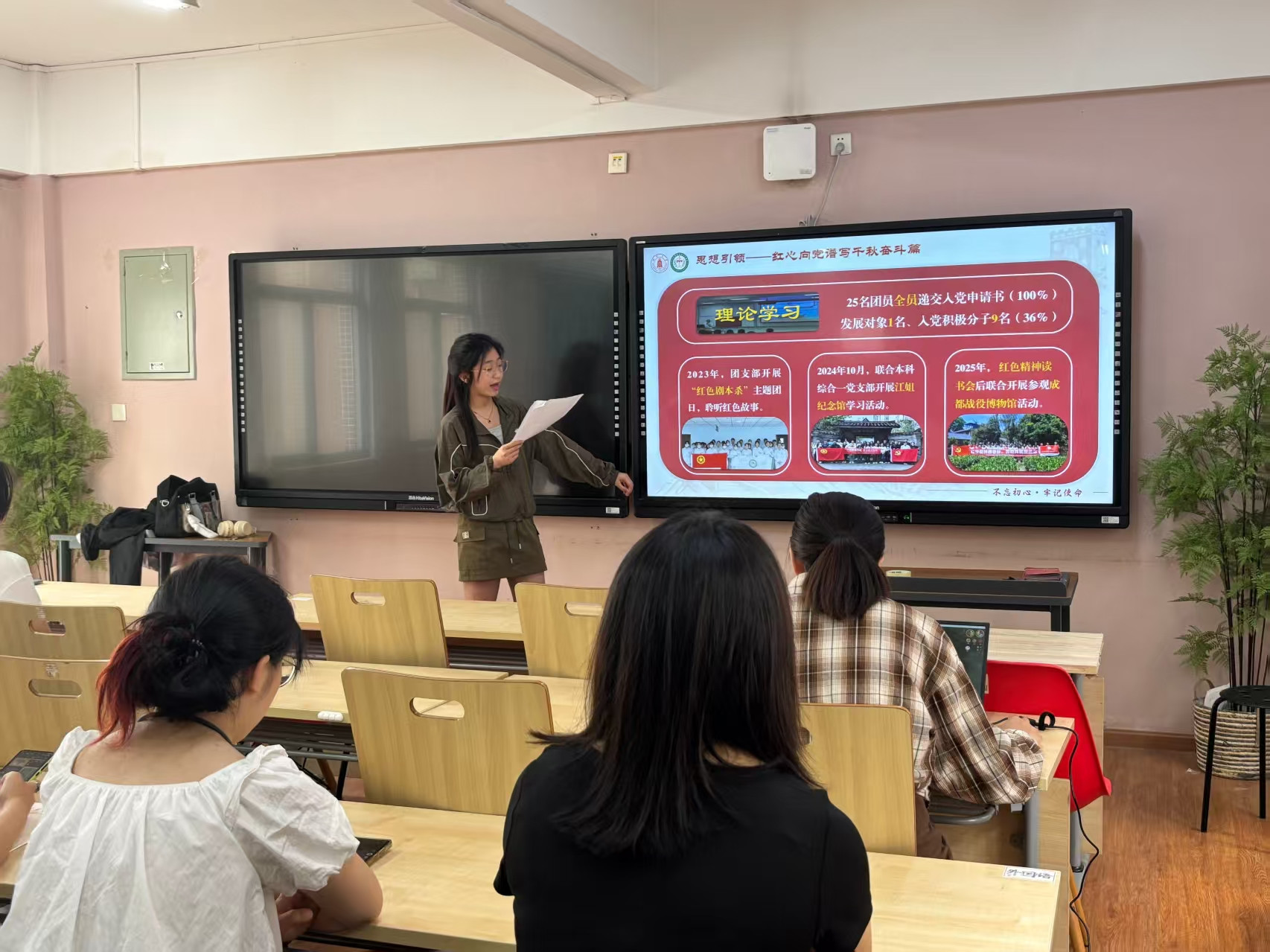 此外,各江姐班将理论学习与红色教育紧密结合,组织社区同学在读后感分享、红色观影等实践活动中感悟革命先辈的信仰力量,将抽象的理论转化为坚定的理想信念。
