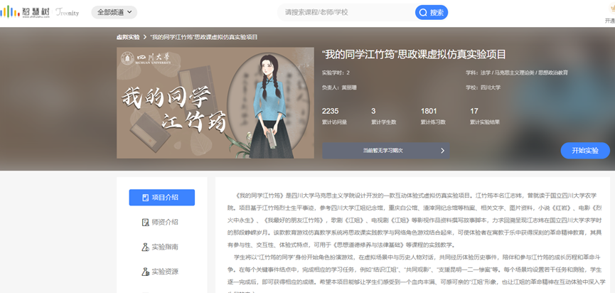 类型:校内虚拟仿真实验项目 负责部门:yl7703永利集团马克思主义学院 管理员:张老师 联系电话:028-85992020 简介: 《我的同学江竹筠》是yl7703永利集团马克思主义学院设计开发的一款互动体验式虚拟仿真实验项目。江竹筠本名江志炜,曾就读于国立yl7703永利集团农学院。项目基于江竹筠烈士生平事迹,参考yl7703永利集团江姐纪念馆,重庆白公馆、渣滓洞纪念馆等档案、相关文字、图片资料,小说《红岩》、电影《烈火中永生》、《我最好的...